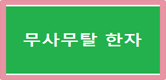 한자는 無事無頉(무사무탈)로 적으며, 개별한자의 뜻은 (無 : 없을 무) (事 : 일 사) (無 : 없을 무) (頉 : 탈날 탈)입니다.